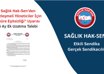 Haberin DevamıDetailsSözleşmeli Yöneticilerin Sözleşme Sürelerindeki Eşitsizlik İçin Sağlık Hak-Sen’den Resmî Talep Sağlık Hak-Sen Genel Merkezi olarak, Sağlık Bakanlığı taşra teşkilatlarında görev yapan sözleşmeli yöneticilerin sözleşme sürelerinde yaşanan hakkaniyete aykırı farklılıkların giderilmesi...